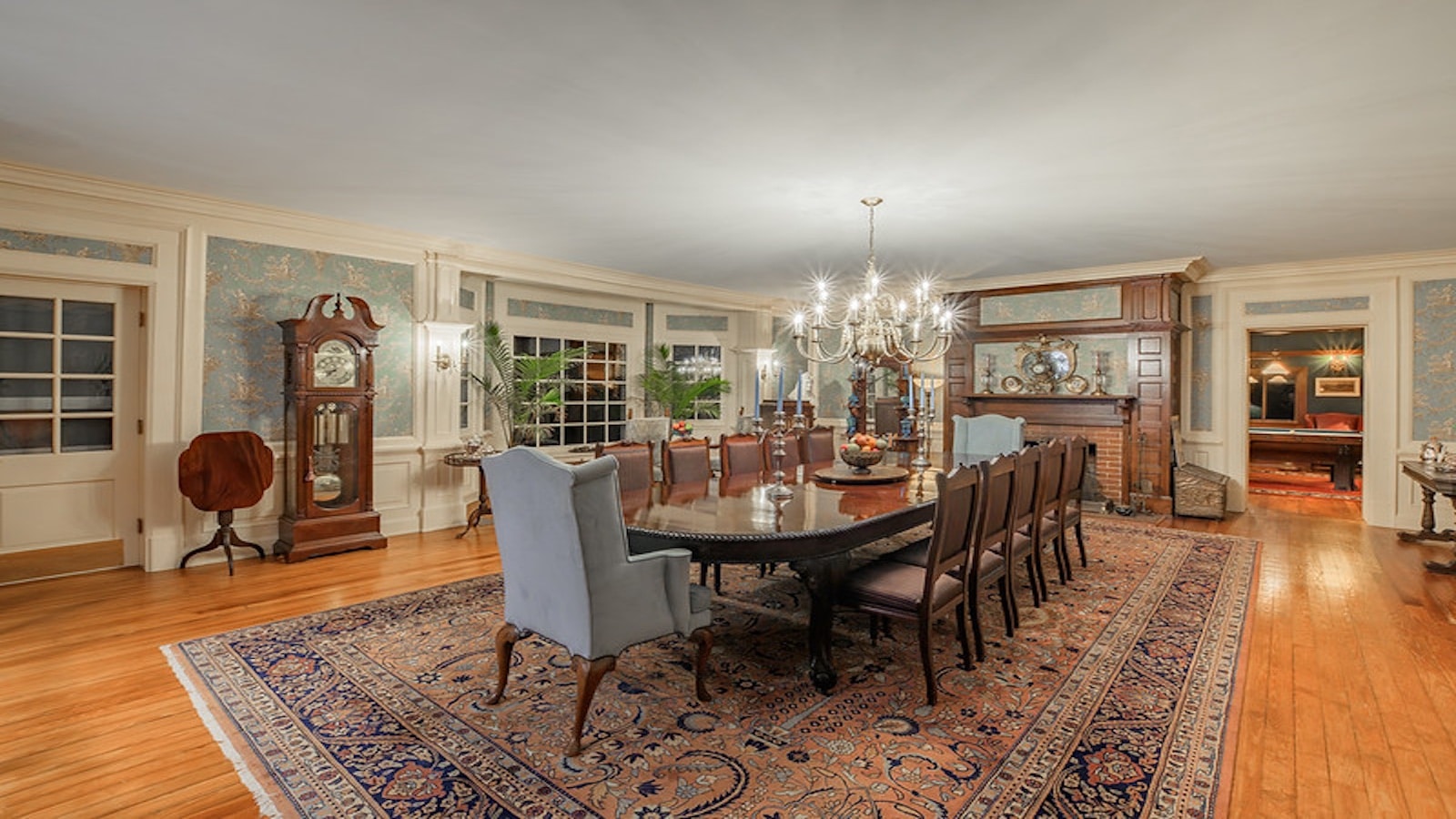 The main level features a breathtaking living room, a bright and inviting sunroom, a refined office, a formal dining room, and a billiard room. A thoughtfully designed breakfast kitchen balances historic charm with everyday functionality. Ascend the grand staircase to discover six beautifully appointed guest suites, each with private ensuite bathrooms, as well as a oak-paneled library perfect for quiet work or reflection. The third floor is dedicated to the owner’s private quarters, while the English basement offers a restored original kitchen, laundry facilities, storage, and access to an enclosed two-car garage.
